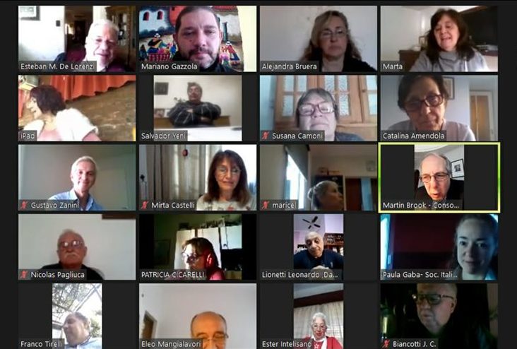 En el día de ayer, lunes 18 durante 2:15 horas se realizó una reunión virtual del que participaron el Cónsul General de Italia en Rosario doctor Martín Brook, el Presidente del Com.It.Es. doctor Cav. Uff. Franco Tirelli, el delegado del CGIE doctor Mariano Gazzola, el Presidente de la Asociación Italiana de Ss. Ms. “Estrella de Italia, doctor Esteban M. De Lorenzi y diecinueve delegados representantes de Asociaciones Italianas de la provincia de Santa Fe y norte de la provincia de Buenos Aires.